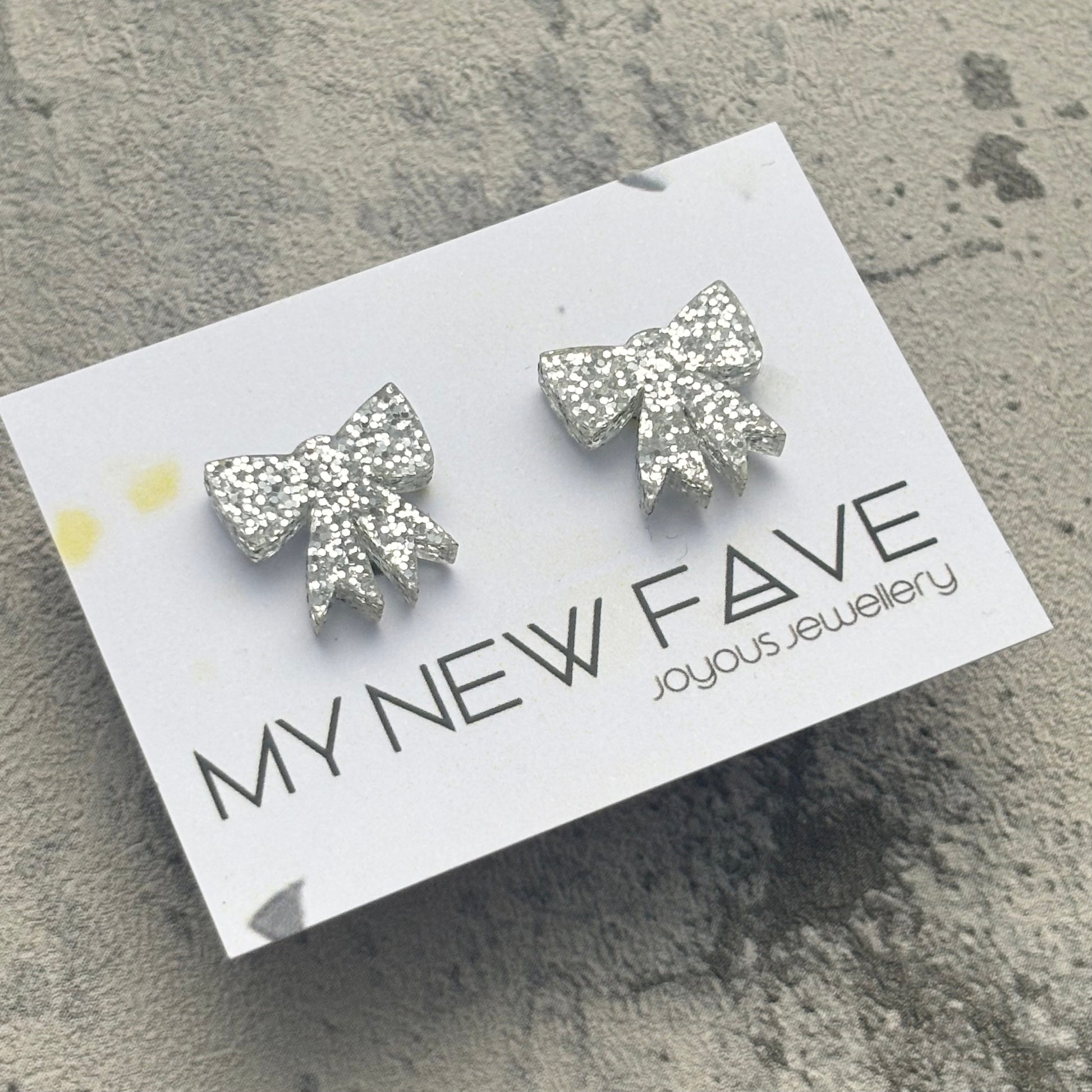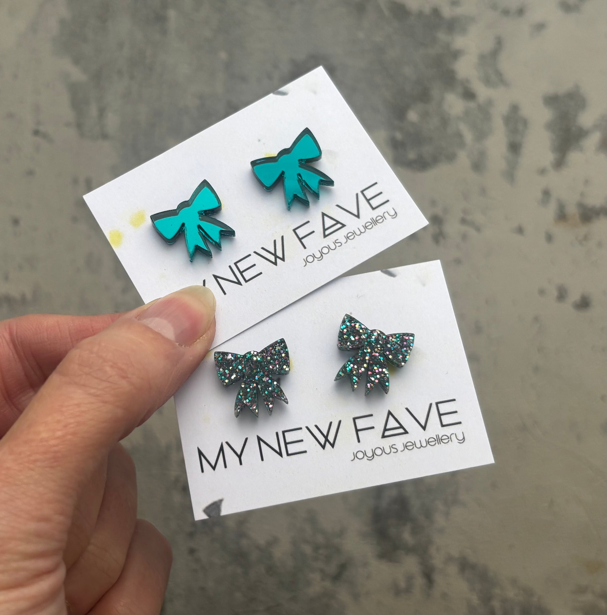 made from coloured glitter or mirror acrylic, these dainty bows are a beautiful accessory which would go with casual and smart outfits.