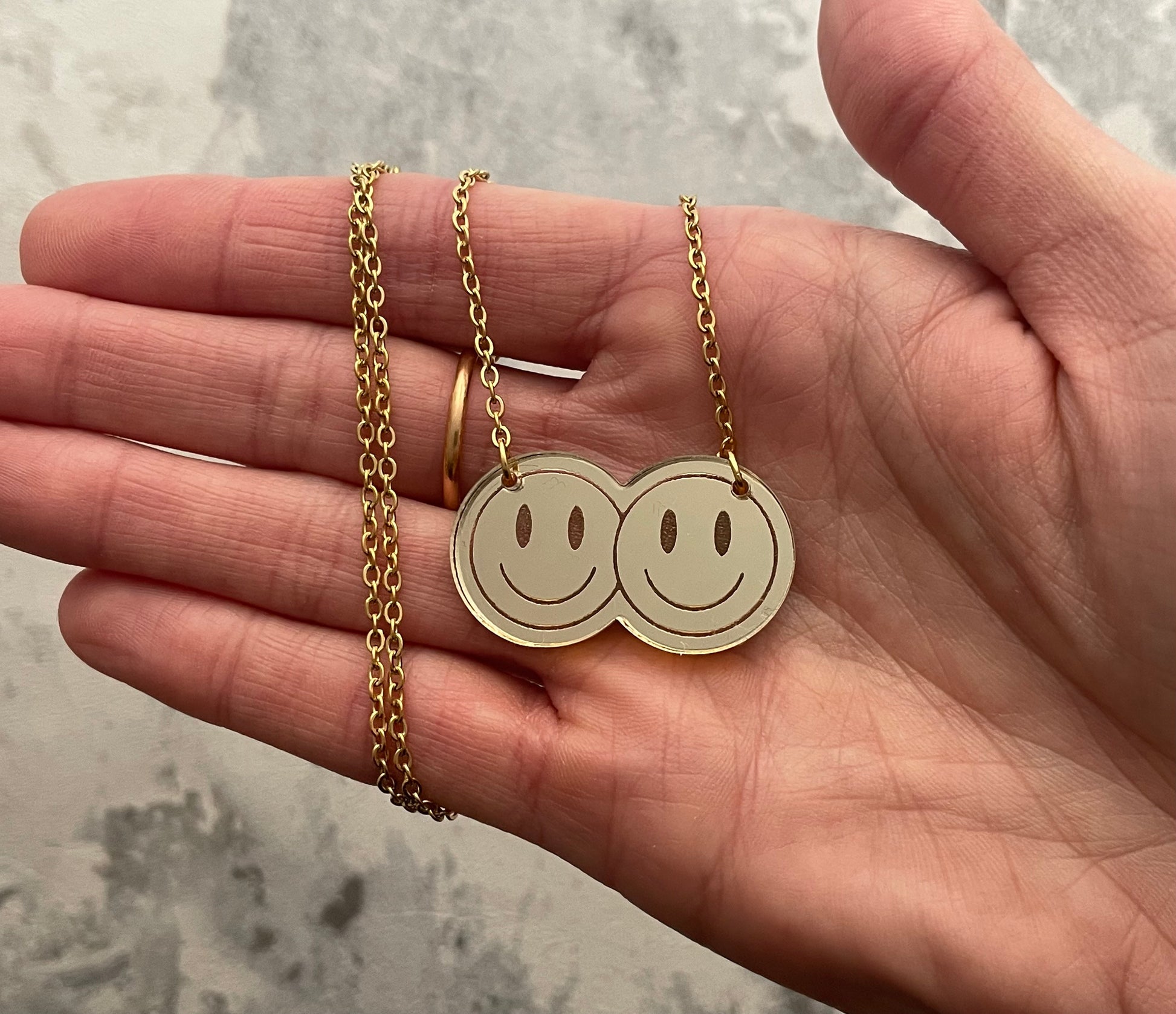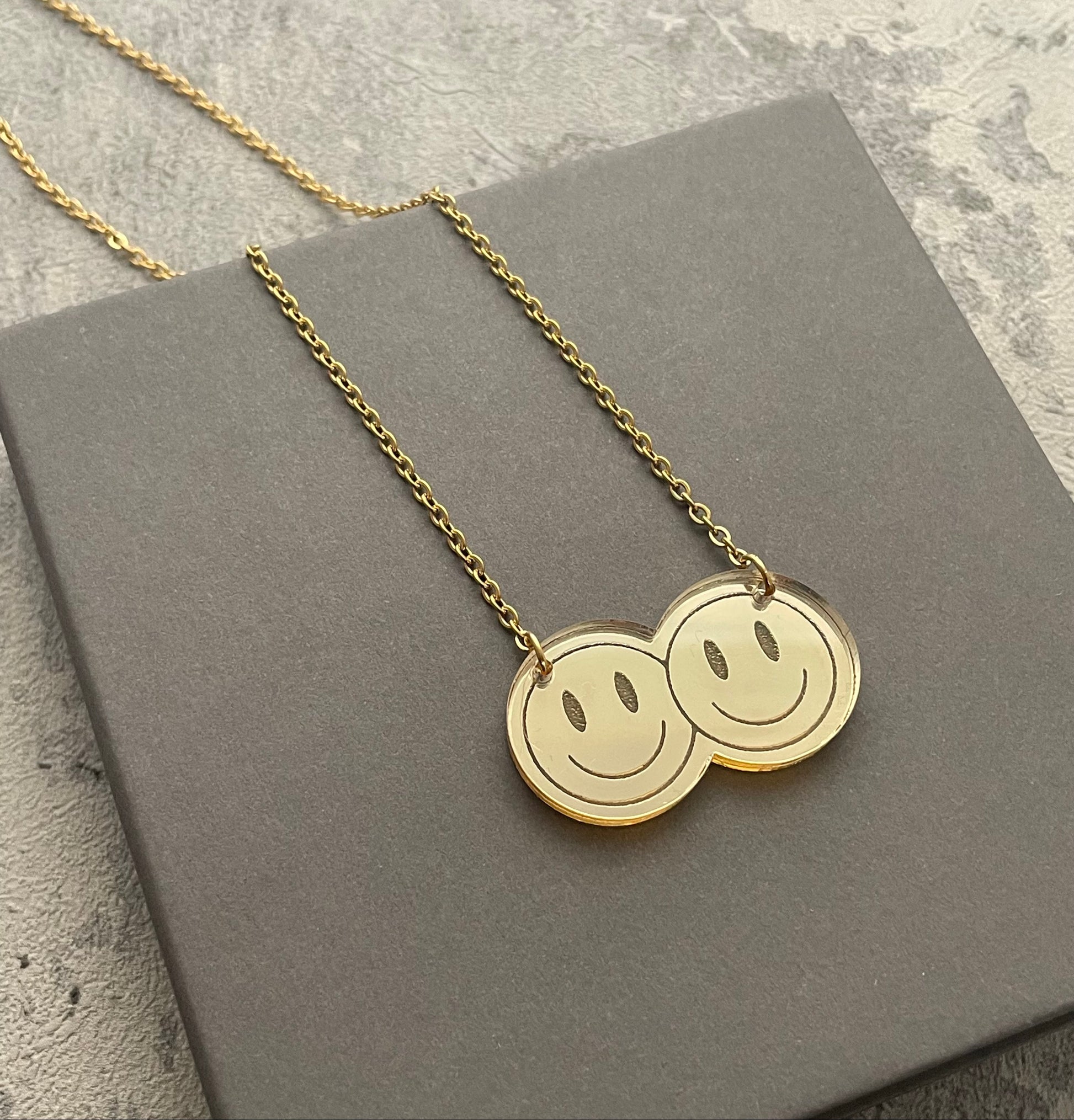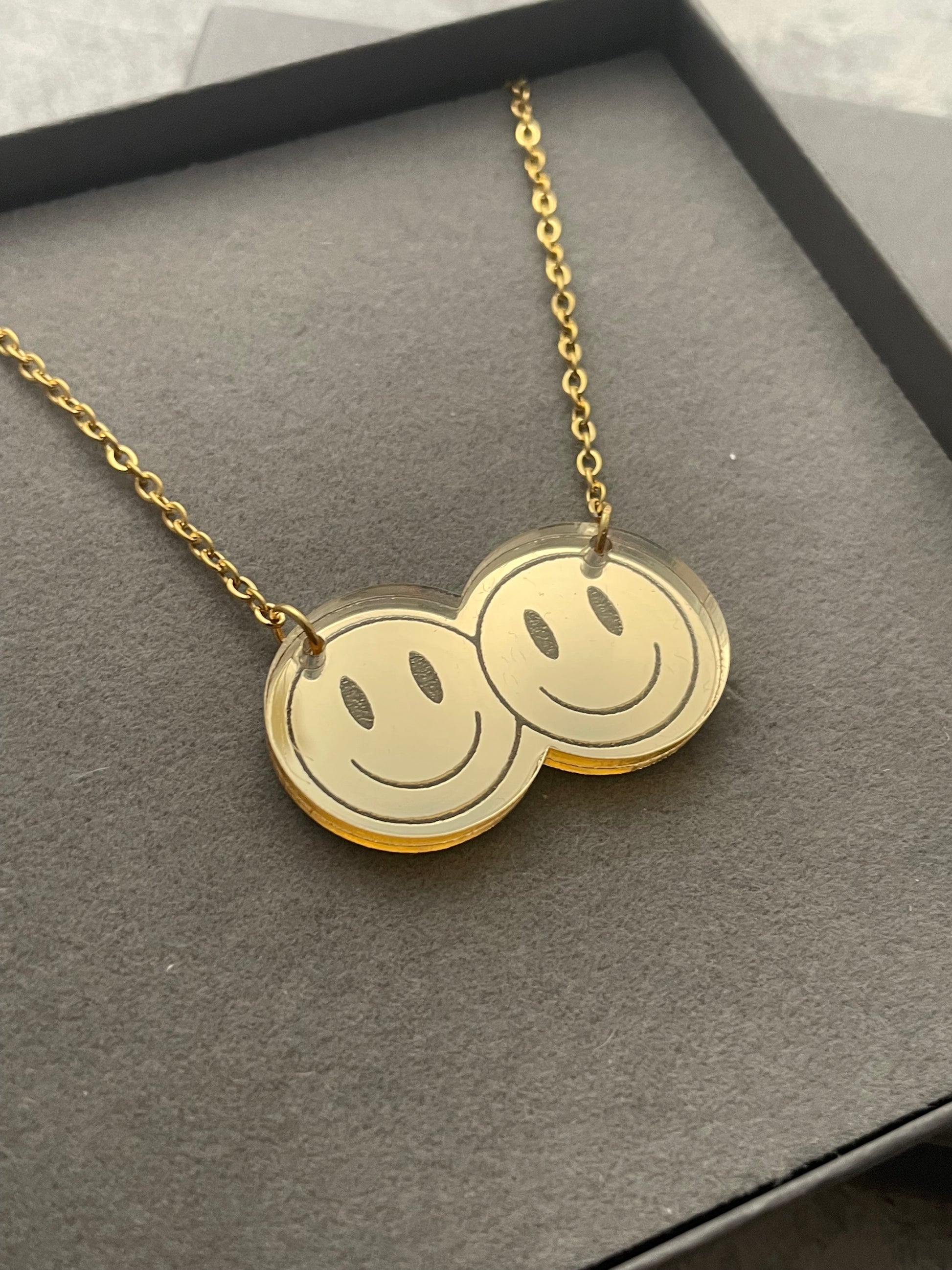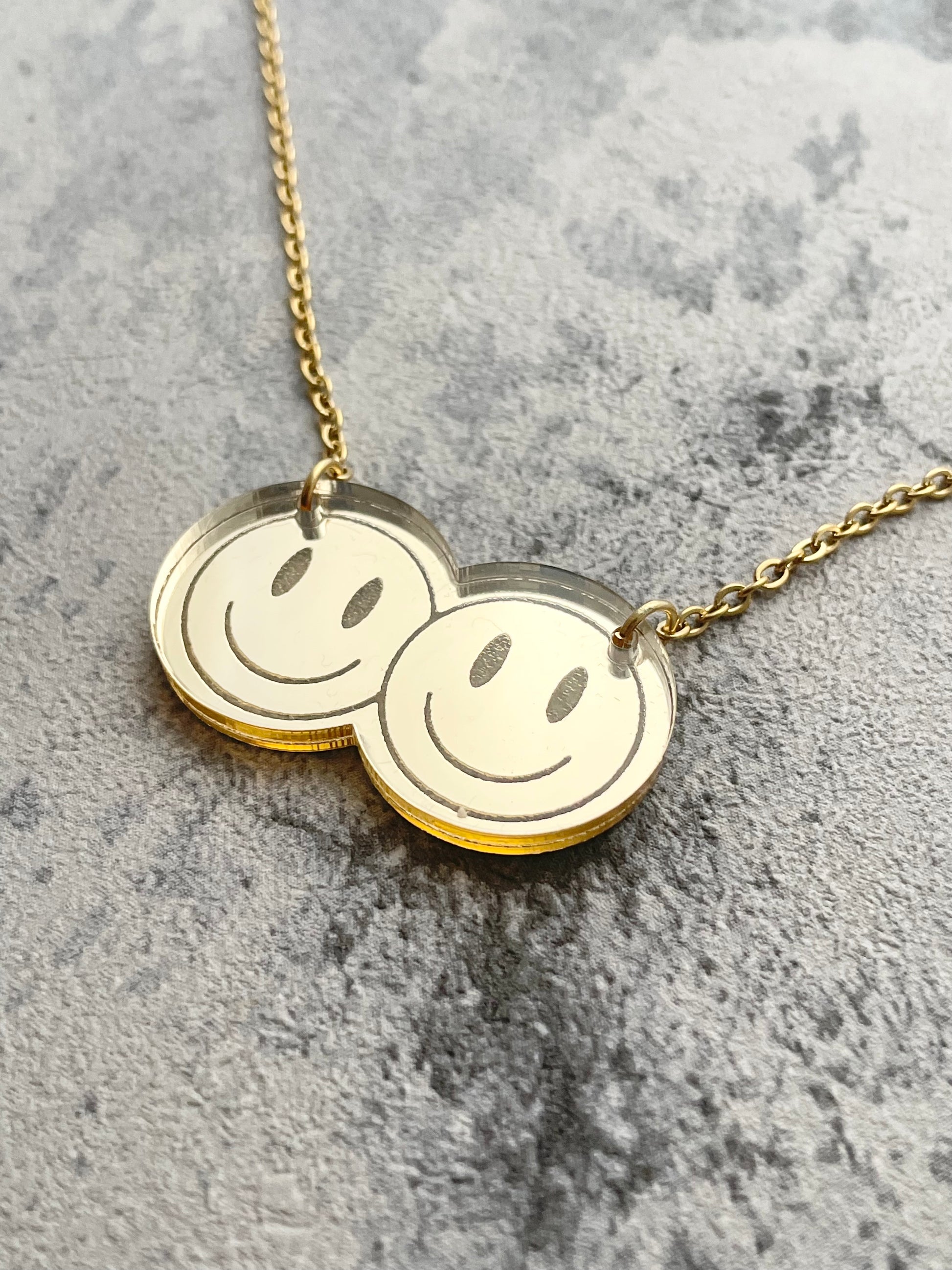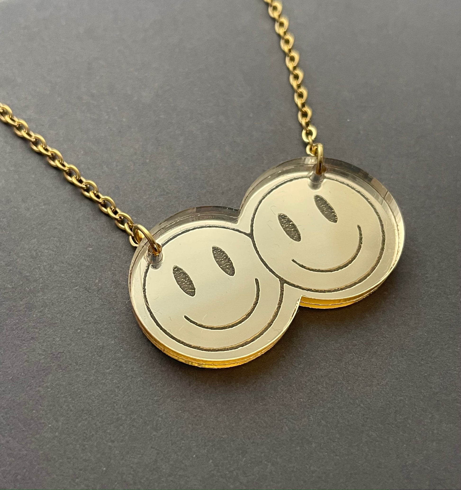 the double smileys are made from Mirror acrylic and are available in two stunning mirror finishes - Gold or silver. Which is your fave?