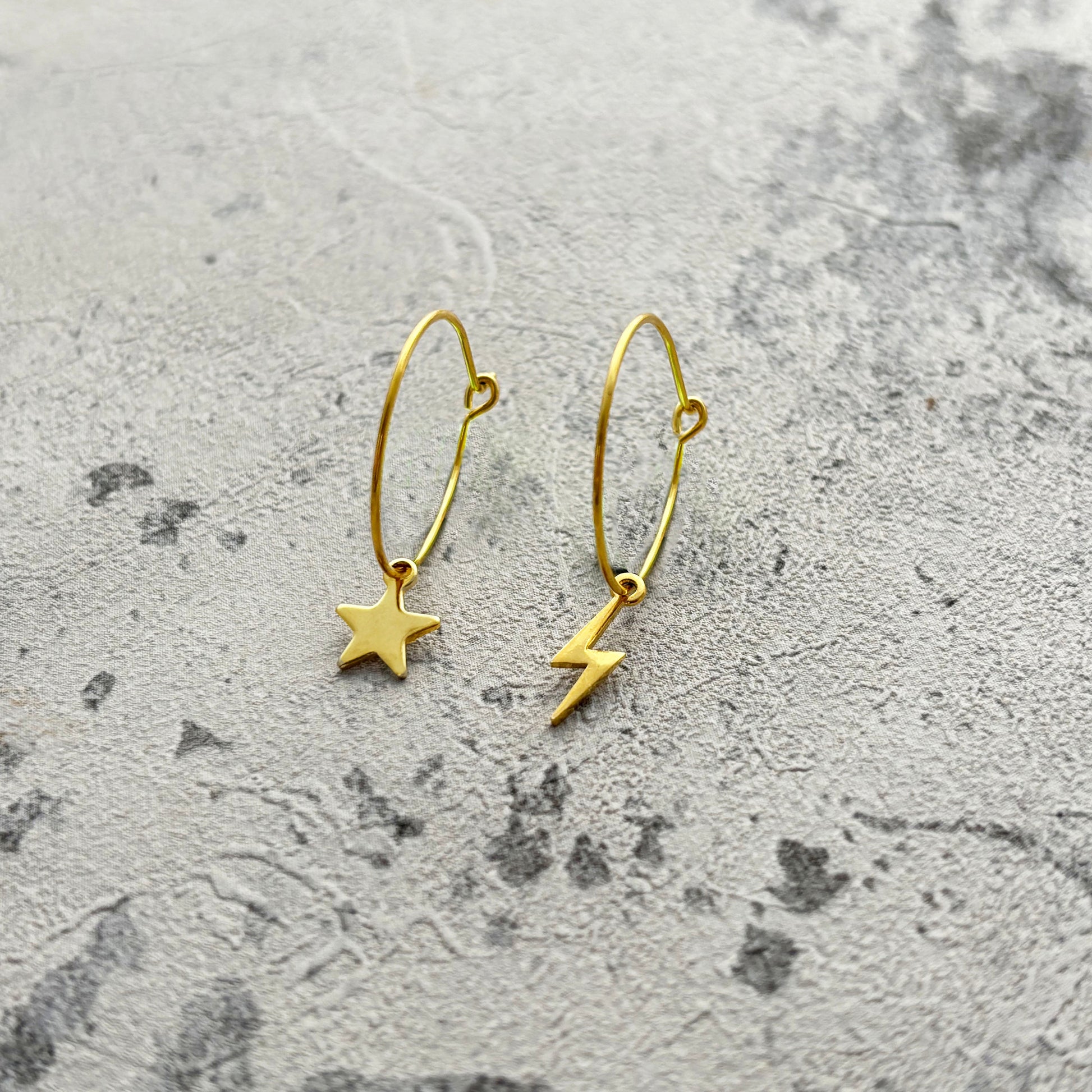 These gorgeous subtle little lightning bolt & star hoops are a fab addition to your jewellery collection!
