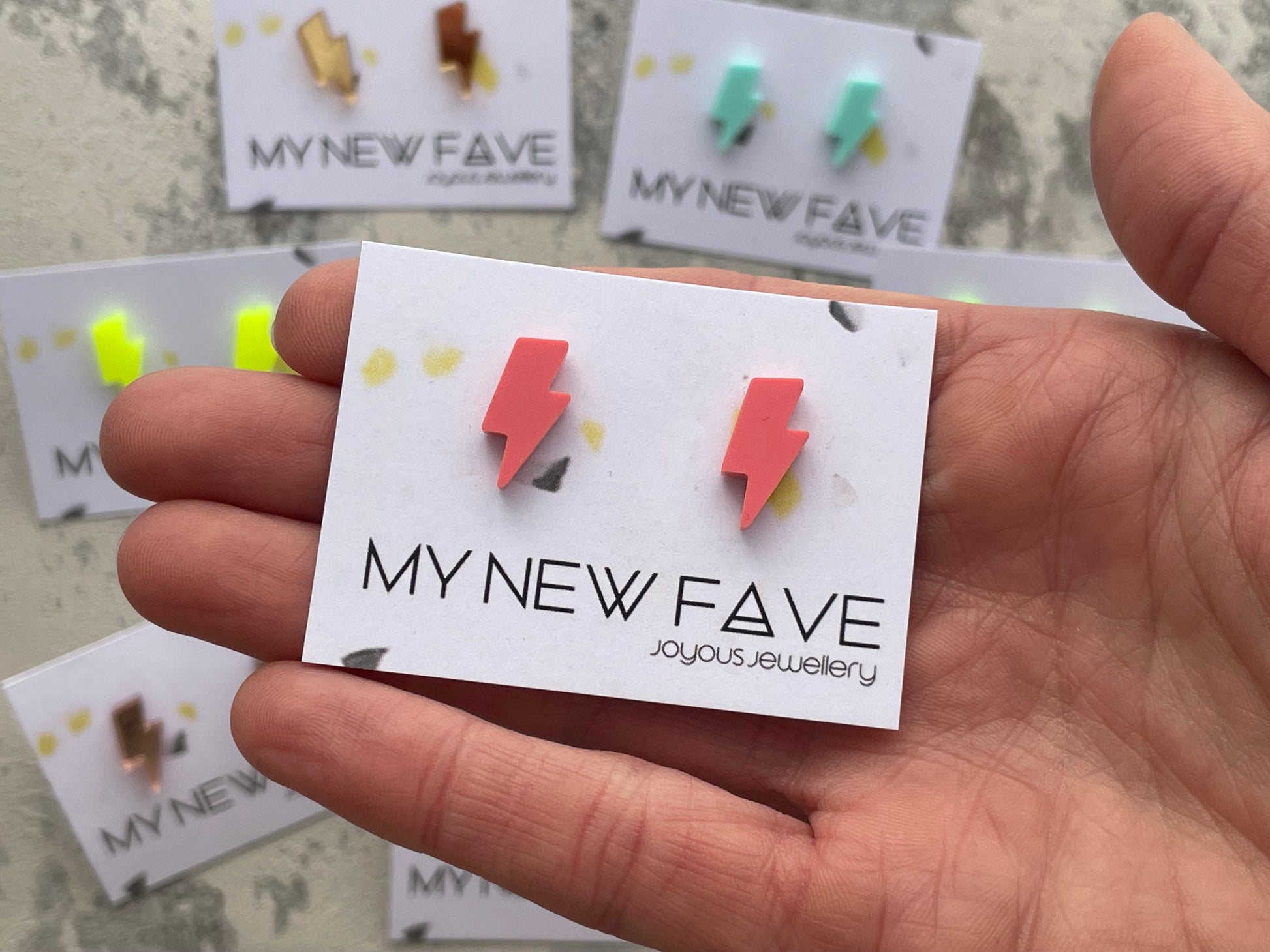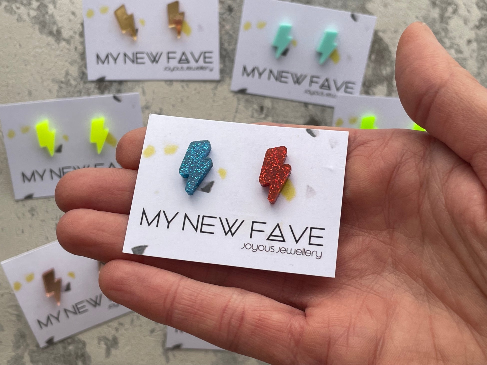 These fab acrylic lightning stud earrings are laser cut acrylic in the shape of lightning bolts, with a fun bold colours or a mirror/glitter finish.